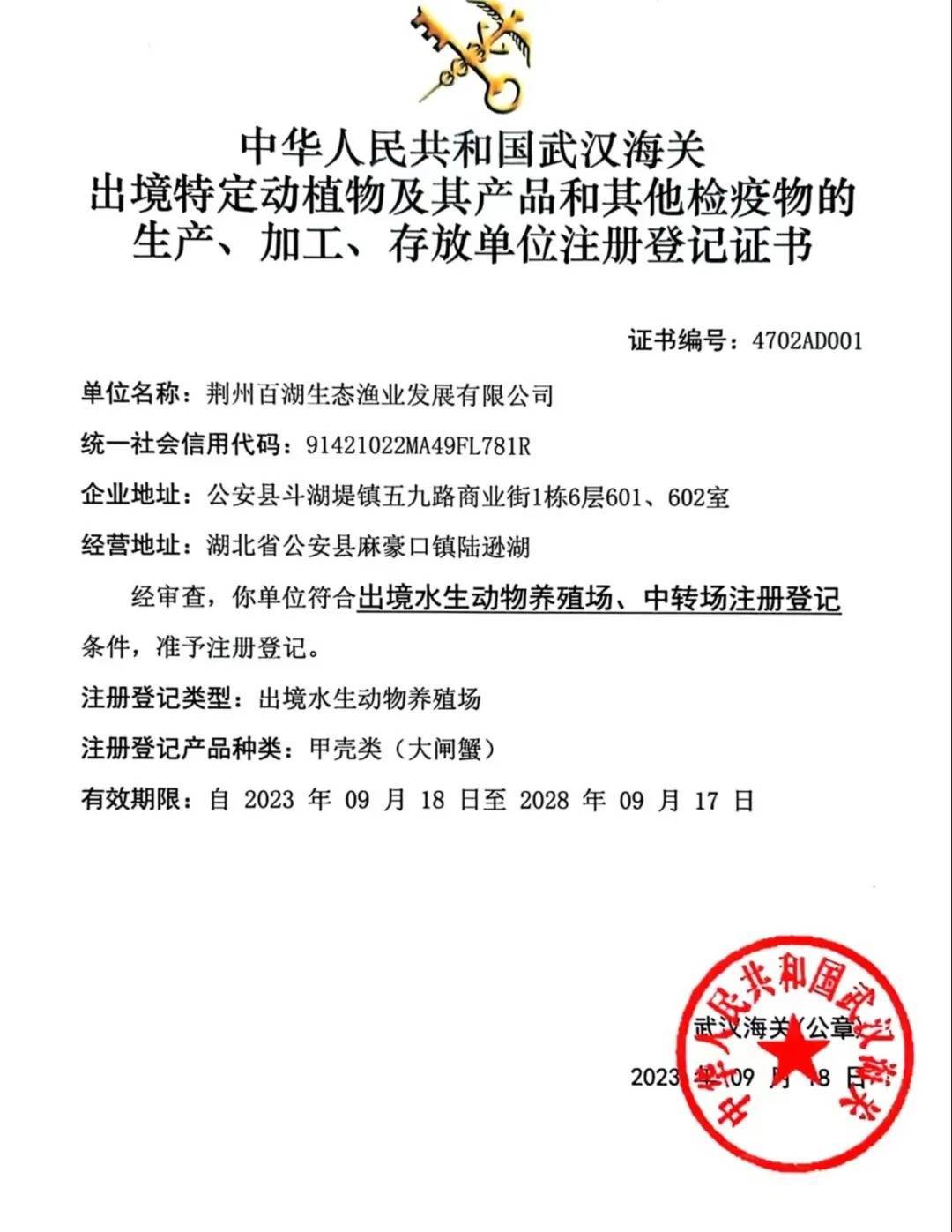 公安县素有“百湖之县”的美誉,水域资源丰富,拥有湖泊102个、河流14条,生态渔业面积达30万亩。推介会上,荆州海关通报的出口备案审批情况与公安县公共检验检测中心出具的102项达标检测报告,不仅是对陆逊湖大闸蟹品质的权威认证,更印证了公安县“生态优先、绿色发展”理念的落地成效。